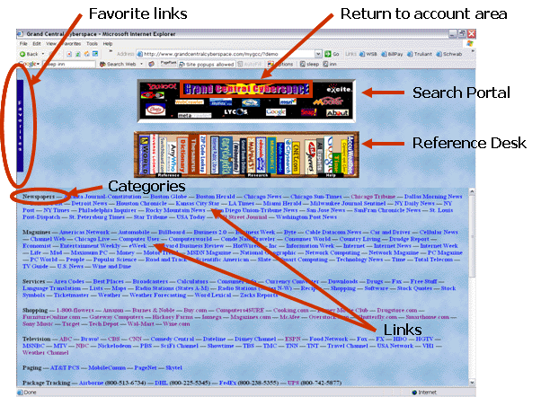 With a MyGCC account, you start with the standard version of the Grand Central Cyberspace page.
